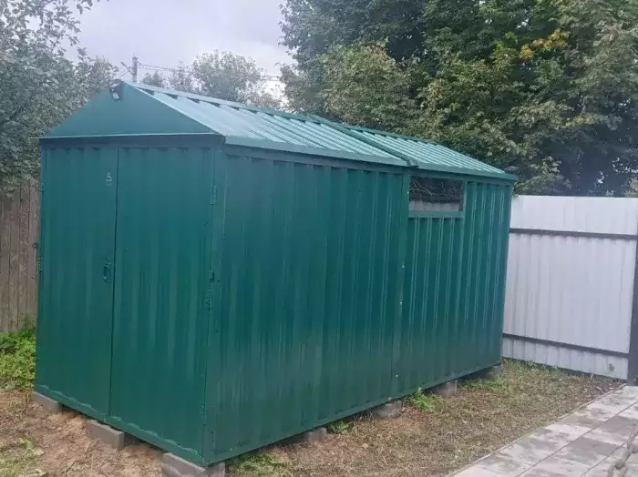 Заказчику этого проекта на участок была необходима компактная конструкция для хранения вещей. Прежде, чем сделать приобретение, он приезжал к нам на выставочную площадку для того, чтобы лично увидеть наши изделия, оценить их качество, а также определиться с параметрами и цветом будущей постройки. Разумно!