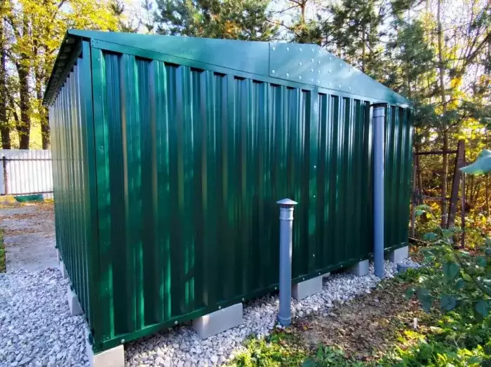 Конструкцию модернизировали из нашего стандартного контейнера 2*2, разделив его пополам, дополнительно разработали удлиненный козырек над входом, чтобы осадки не попали внутрь. Заказчик доволен и будет рекомендовать нас знакомым:)