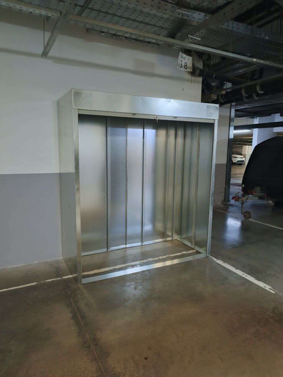 Заказчику этого проекта в подземный паркинг на парковочное место был необходим шкаф для хранения колес и личных вещей.