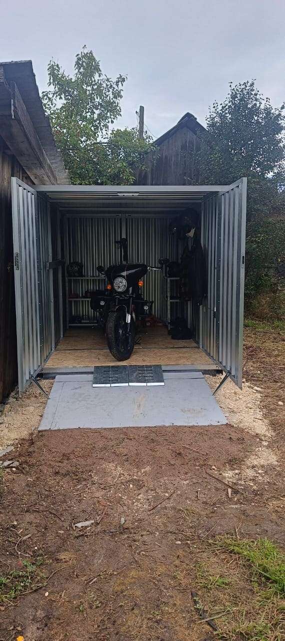 Проект: 3-метровый секицонный гараж для хранения мотоцикла в циноковм цвете.