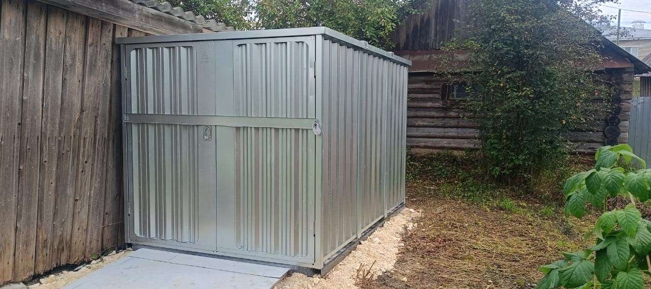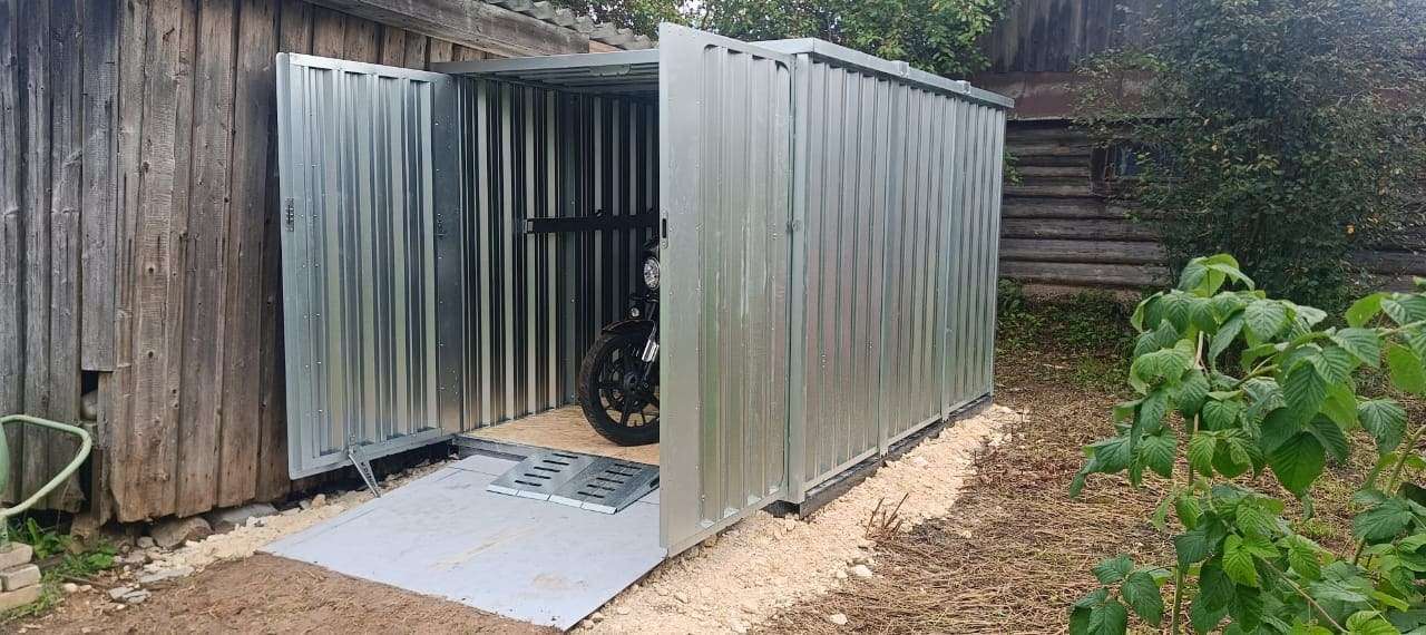 Секционный гараж для мотоцикла в цинковом цвете в дер. Григорьево, Чагодощенский мун.окр, Вологодская обл.