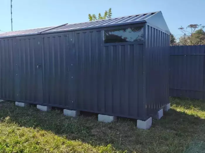 Доставляли гараж на участок заказчика манипулятором в разобранном виде. Нашими специалистами предоставлялась услуга по сборке. Временно установили постройку на бетонные блоки.