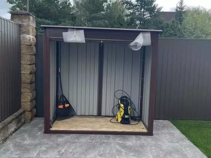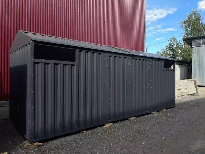 Заказчику этого проекта понадобился на участок гараж для мототехники. Ему понравилась наша секционная модель, так как в будущем он планирует переставлять конструкцию на другое место и основательно подготавливать площадку под гараж. Также заказчику понравилось то, что при необходимости можно будет увеличить размер постройки.