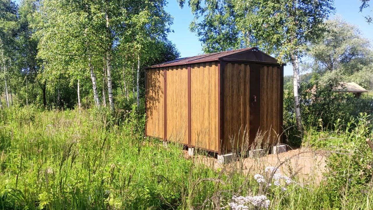Доставляли хозблок на участок заказчика манипулятором в собранном виде, так как не было никаких препятствий для разгрузки транспорта.
