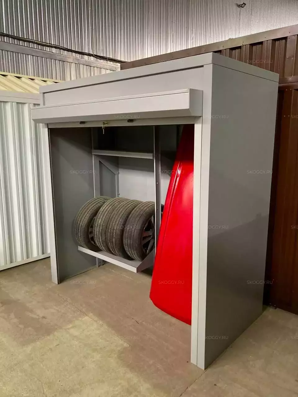К нам поступил запрос от клиента - ему необходимо было организовать место для хранения автомобильного инвентаря в паркинге. Мы предложили ему специально разработанную для этих целей конструкцию - металлический шкаф от компании Skoggy, который можно установить в любом месте.