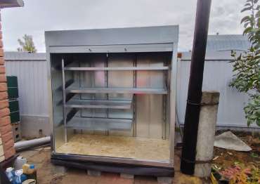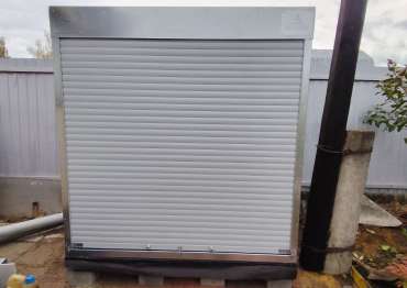 Нами был изготовлен шкаф размером 1,8 х 1,8 х 0,8 м с рольставнями в блестящем цинковом цвете.
