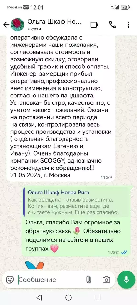 Заказчица, прежде чем совершить покупку, предварительно приезжала к нам на выставочную площадку, чтобы лично увидеть наши изделия и оценить их качество. Она осталась очень довольна такой возможностью :)