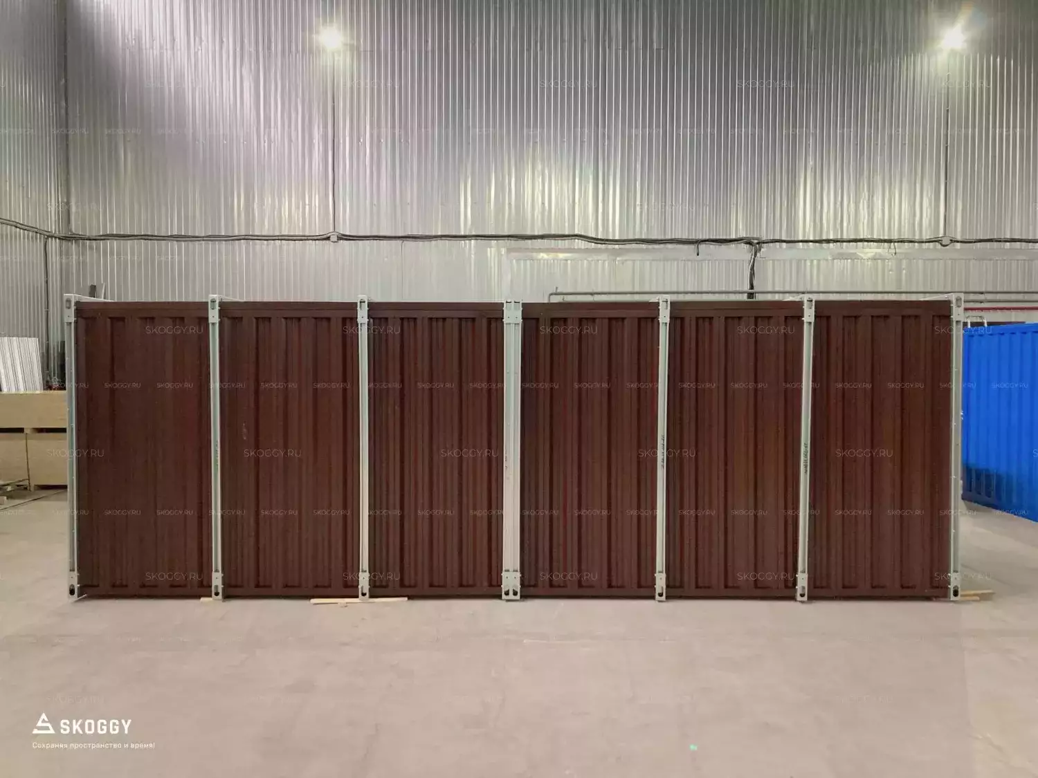 Наша компания SKOGGY успешно реализовала данный проект всего за 9 дней. Заказчик остался очень доволен. По информации от клиента, сборно-разборной контейнер уже несколько раз перевозился с одной стройплощадки на другую, сохранив свой первозданный вид. Все остались довольны!