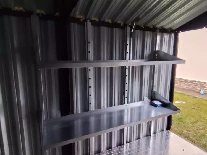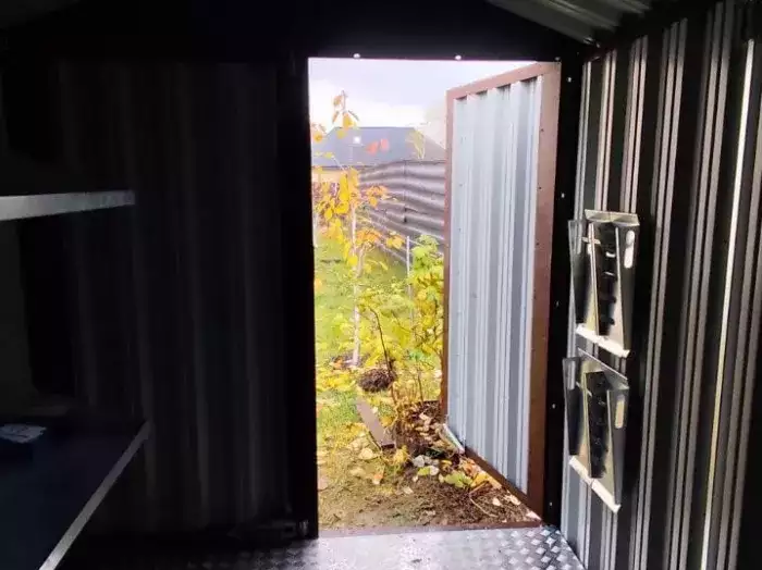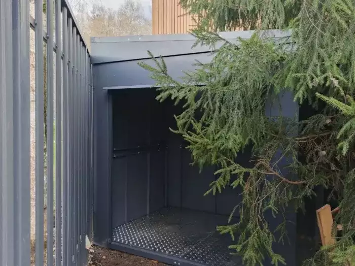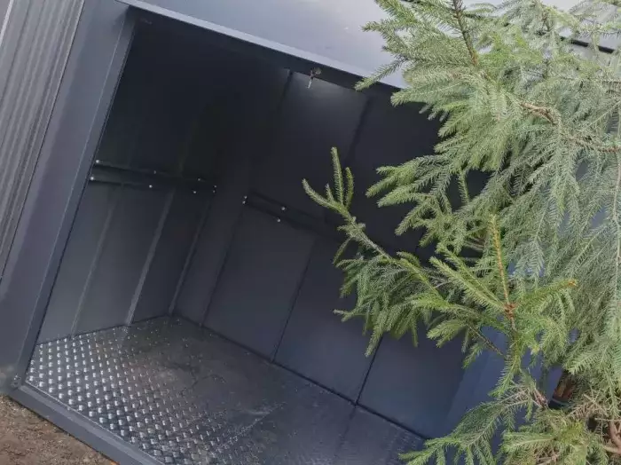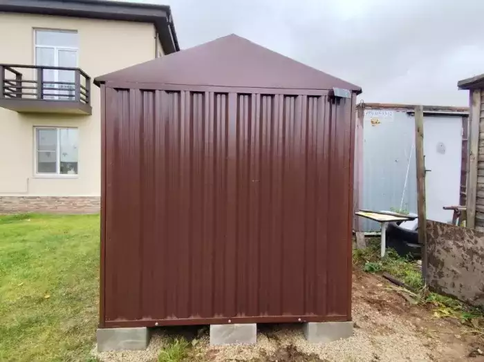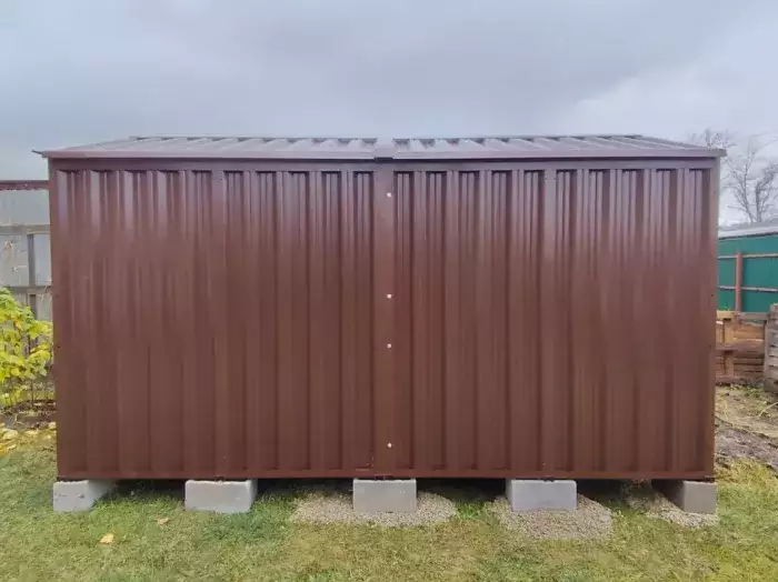 Нами была изготовлена конструкция уличного шкафа индивидуального размера 1,2 х 2 х 0,7 м с дополнительным полом из OSB в популярнейшем шоколадно-коричневом цвете RAL 8017.