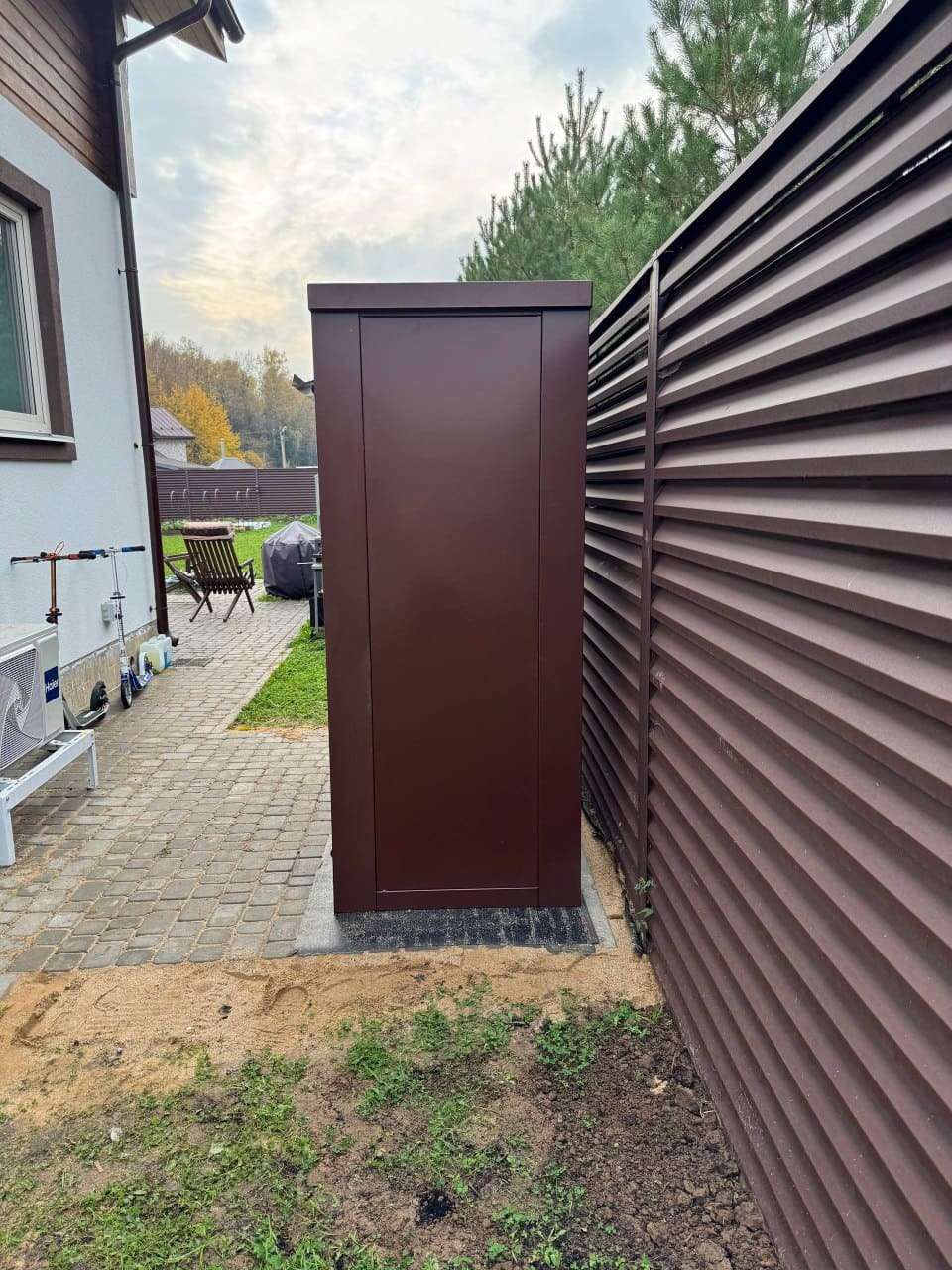Уличный шкаф для инвентаря в шоколадном цвете в КП Новотишково, Пушкинский г. о, МО