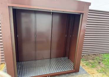 Проект: уличный всепогодный шкаф 2,03 х 2,022 х 0,88 м для хранения инвентаря в шоколадно-коричневом цвете.