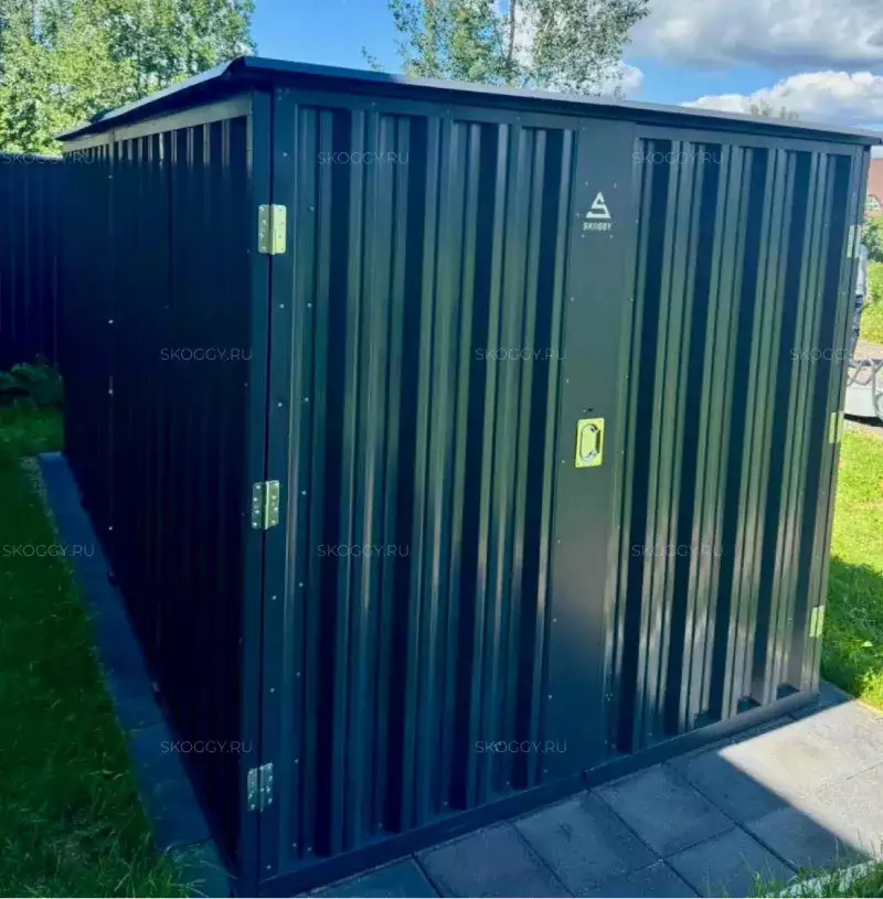 Проект: 4-метровый хозблок для хранения вещей в графитовом цвете.