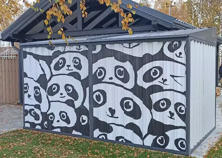 Интересной особенностью нанесения изображения на контейнер является то, что изображение наносится не на сам контейнер, а на гладкий металлический лист, который потом прокатывается на станке и формируется в профнастил марки НС-35, с полимеризацией чернил ультрафиолетом.