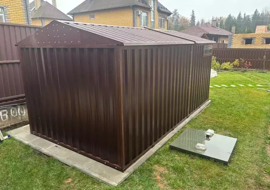 • Контейнер выдержит испытание на прочность: он устойчив к любым погодным условиям благодаря прочной двускатной крыше.