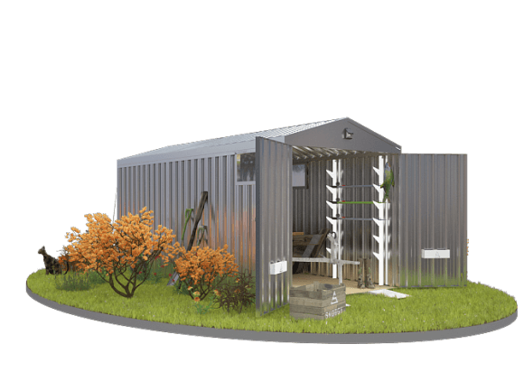 Проект: 2-метровый хозблок для хранения хозяйственных принадлежностей в цинковом цвете.