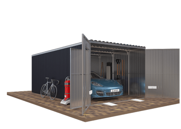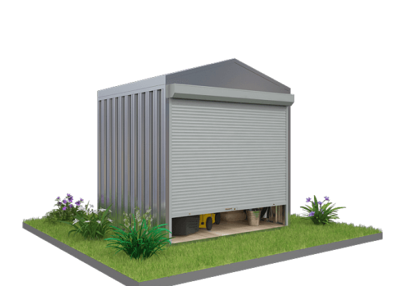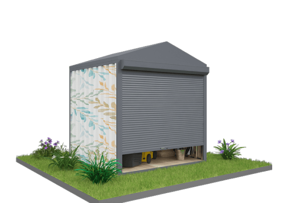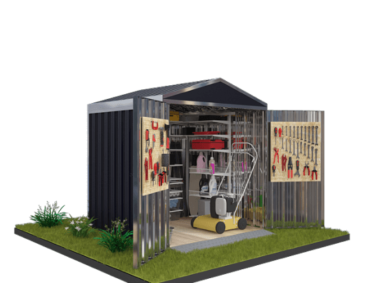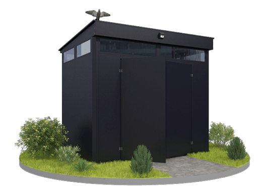 Проект: 4-метровый хозблок для хранения газонокосилок и хозяйственных вещей в графитовом цвете.
